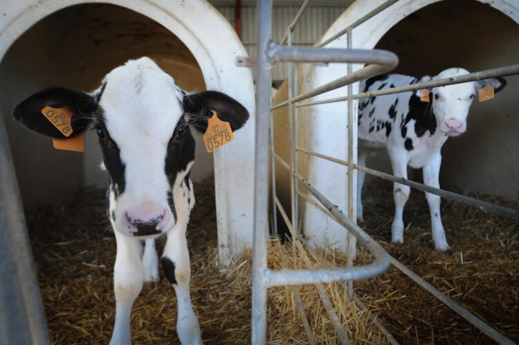 Cows are gentle, intelligent animals, who, when given the chance, will nurture their young and form lifelong friendships with one another. But on dairy farms, cows are intensively confined and lead desperately unhappy lives. Cows only produce milk after giving birth, but they aren’t given the opportunity to raise their young. Their calves are taken away from them when they are just a day or so old, causing grief and anguish to both mother and calf. Mother cows often bellow and call out frantically for their young for several days afterward.