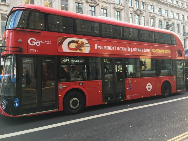 our happy future drove past us this morning @peta #doubledecker #bigredbus #londonbus #london #govegan pic.twitter.com/boNFTADot4