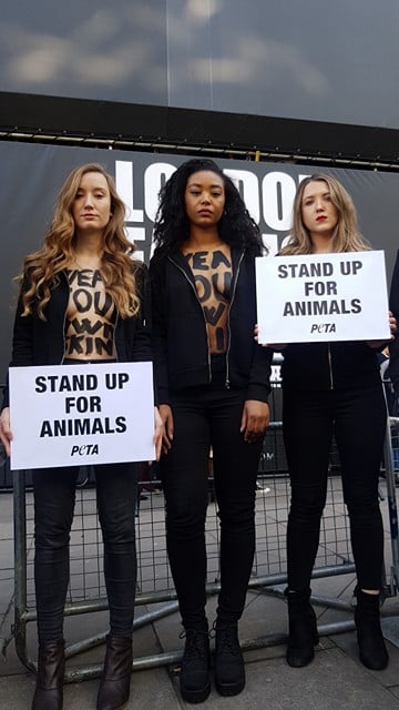A group of female PETA supporters braved the winter weather and bared their skin for a radical vegan protest at the start of London Fashion Week on Friday.