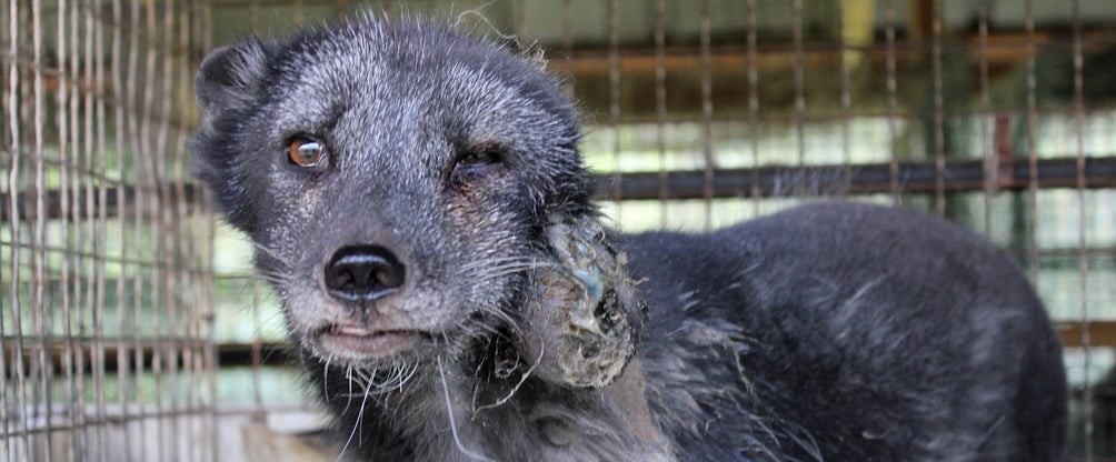 More than 100 million animals suffer each year for the global fur trade, most of them reared in terrible conditions on fur farms. Naturally wide-ranging species such as raccoon dogs, minks, and foxes are subjected to physical and psychological torment in small, barren cages for their entire lives before being killed by gassing or electrocution and then skinned. Wild animals caught for their fur, such as coyotes, fare little better – they languish in agony in cruel traps for hours or even days before being killed.