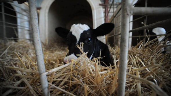 Treated as milk-producing machines, cows on dairy farms are genetically manipulated and may be given antibiotics and hormones. Their calves are taken away from them at just 1 day old, causing grief and anguish to both mother and calf. Mother cows often bellow and call out frantically for their young for several days.