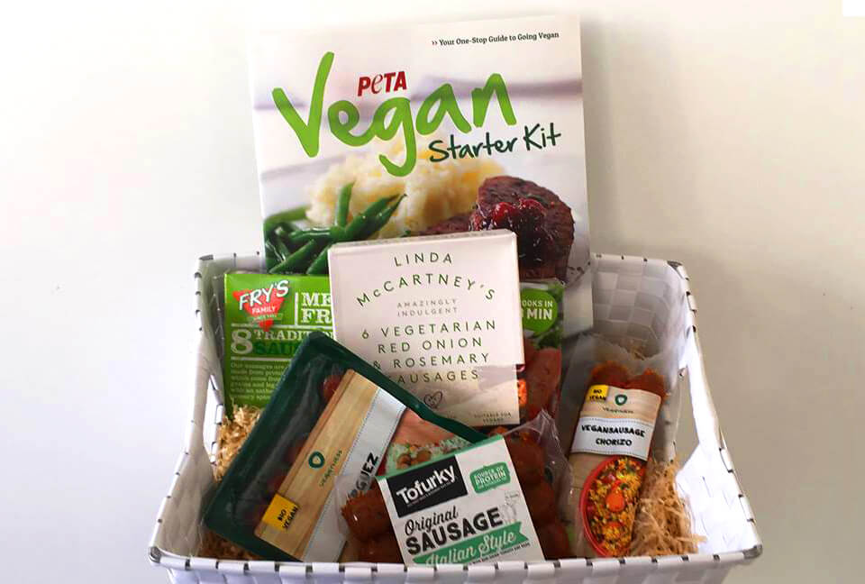 After reading David Mitchell’s opinion piece about veganism, PETA sent the Peep Show star a vegan hamper filled to the brim with vegan sausages.