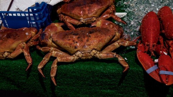A photographer visited the market and found live lobsters tied up and scattered across the floor. Live crabs were stacked on top of one another as though they were bricks rather than sentient beings. Fish were packed on ice, some still alive with their mouths open, gasping for breath, and others dead and mutilated – a telling insight into the utter disregard the fishing industry has for these animals: