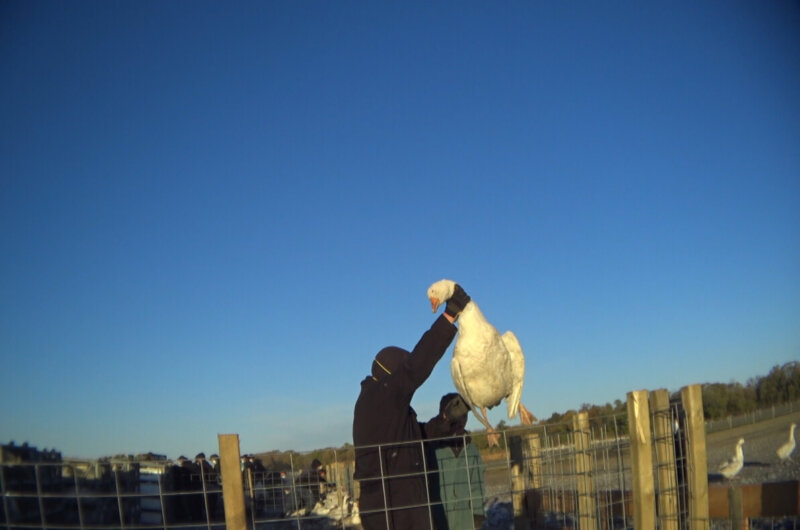 Ducks and geese used for down are shipped in all weather extremes to abattoirs, where their throats are cut and their bodies dunked into defeathering tanks.