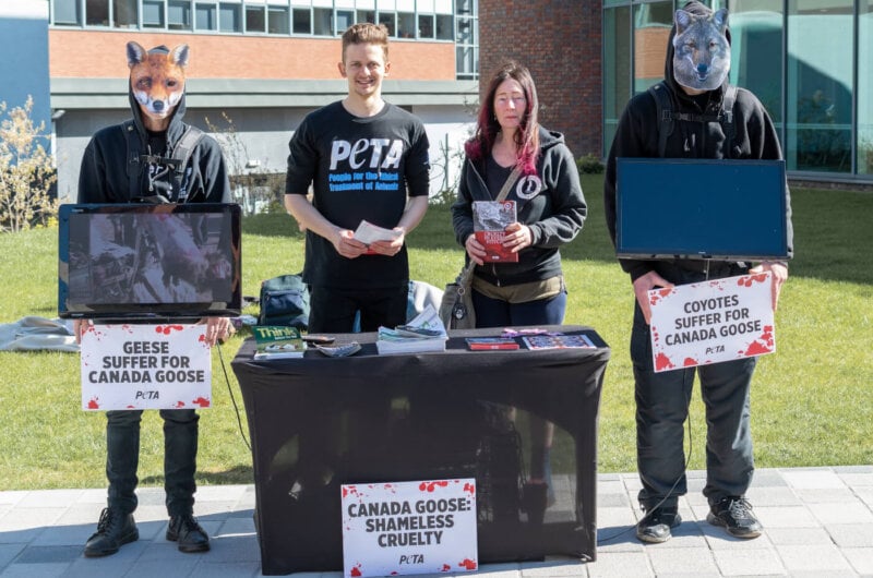 You may have already seen someone wearing a Canada Goose jacket this season. Many people don’t realise that animals are abused for the brand’s fur trim and down-feather fillers, so please speak up for the coyotes and birds who are suffering – and together, we’ll make sure everyone learns about this cruelty: