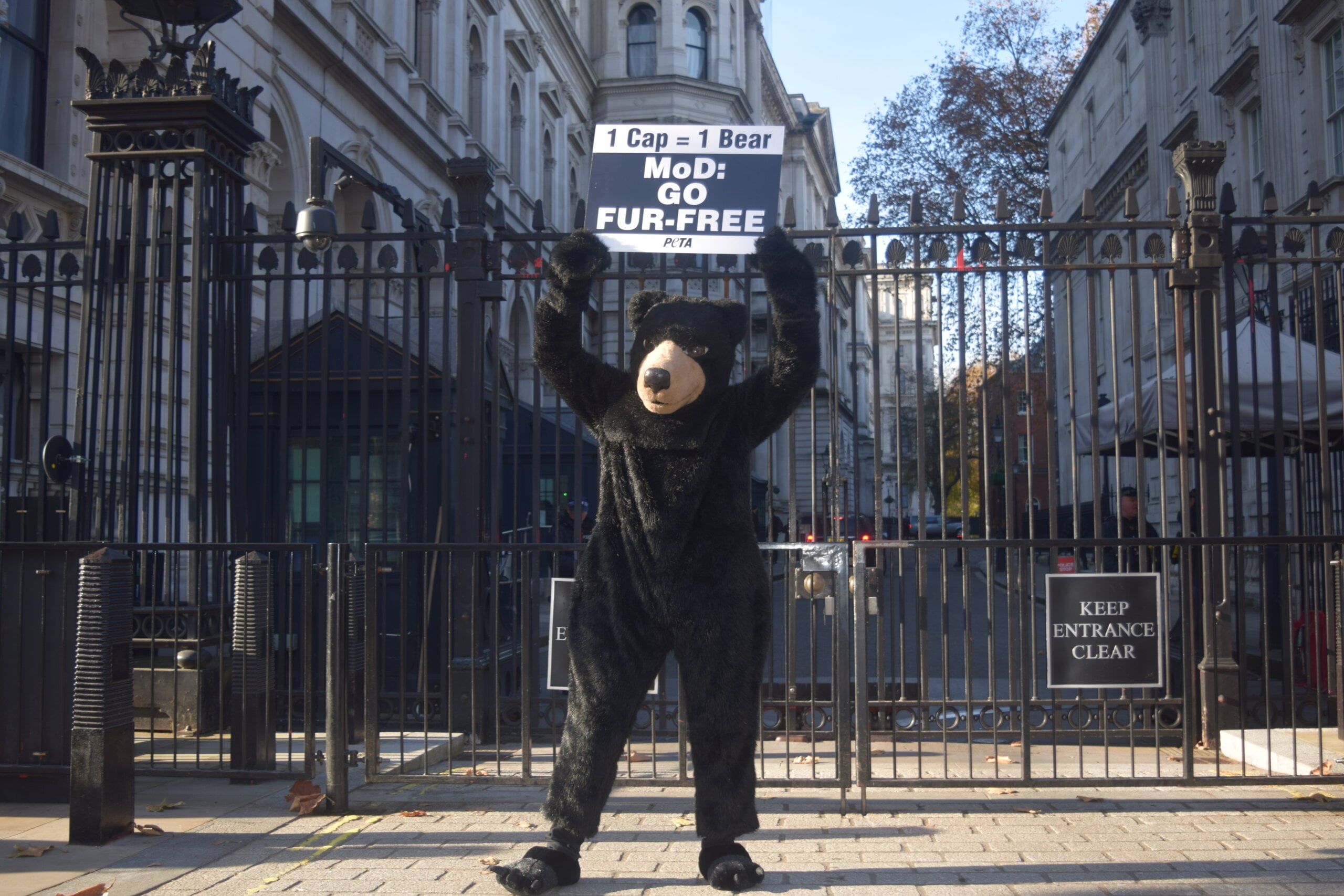 If you go down to 10 Downing Street today, you’re sure to find … PETA’s “bear” calling on the prime minister to quick-march ECOPEL’s new faux fur into use for the Queen’s Guard’s caps.