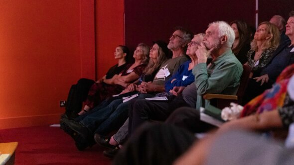 Speakers captivated the crowd with tales of how PETA entities around the world have bewitched judges in recent courtroom showdowns, mastered the art of disguise in the latest investigations, made thousands of dogs vanish from a hellish breeding warehouse in the US, and even brought a 3.5-metre-tall robotic elephant to life to help spare real elephants in India a life in chains! Ingrid also took guests behind the scenes of more perilous endeavours, sharing gripping accounts and videos of the PETA-supported rescue missions in Ukraine, Turkey, and Syria.