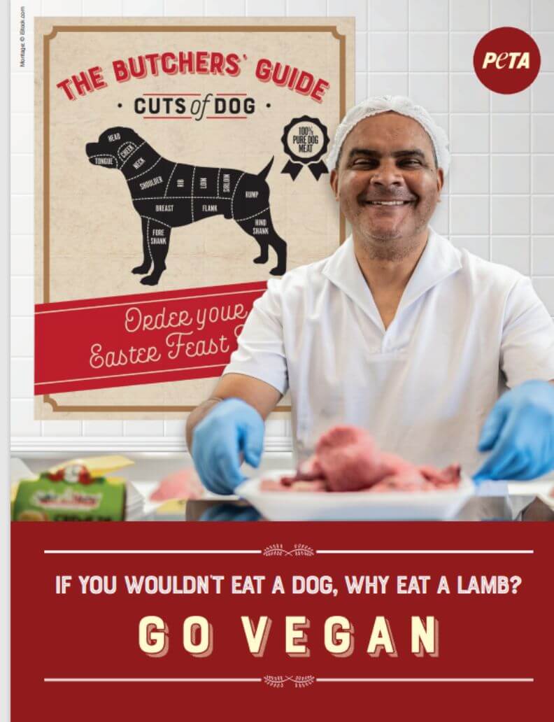 If you wouldn’t eat a labrador, why eat a lamb? Ahead of Easter, PETA has placed these billboards in Cardiff Central station: