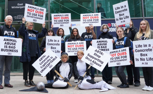 In December, a PETA Asia investigation into crocodile farming in Thailand showed how crocodiles bred for their skin spend their lives in barren enclosures containing murky pits of water before being violently killed. One crocodile was seen moving for a full 23 minutes after a worker plunged a metal blade into the animal’s neck.
