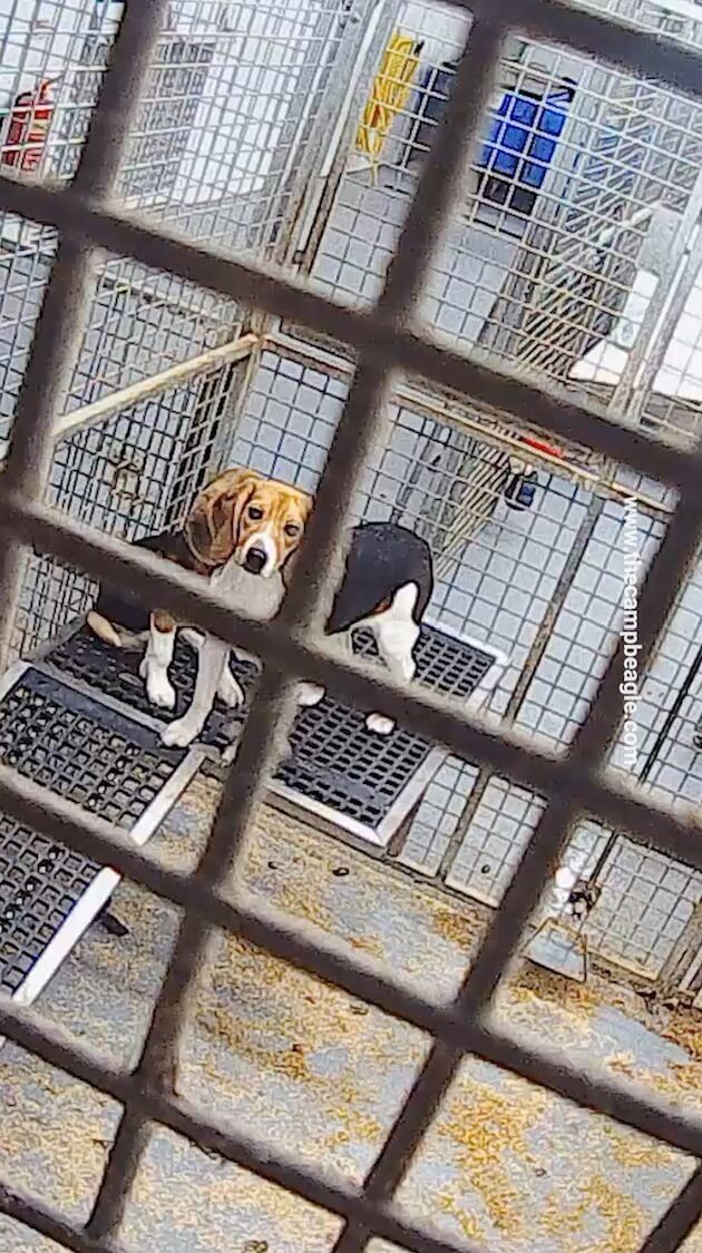 The footage was captured by Camp Beagle and provides a rare glimpse into the ramshackle living conditions of the countless dogs warehoused at the facility.