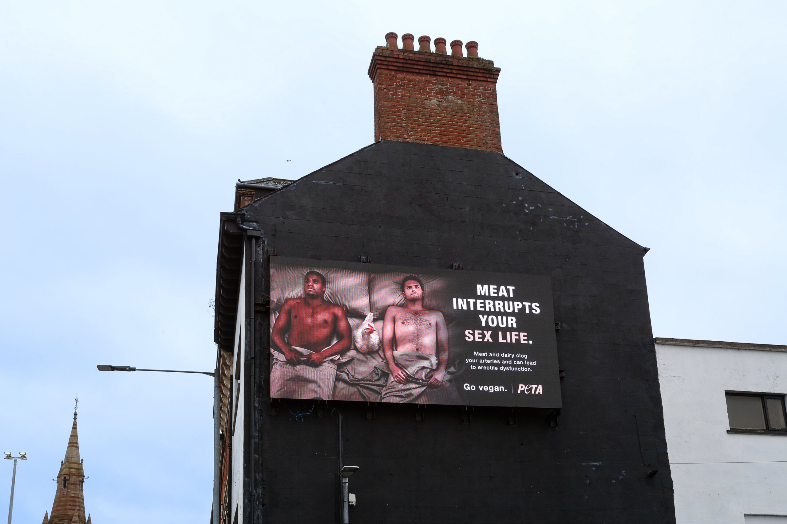 If you are unhappy with your sex life, meat could be to blame. People in Belfast – named the least sexually satisfied city in the UK – got some serious food for thought this Veganuary. A new PETA billboard warns viewers that artery-clogging meat and dairy foods can grind bedroom fun to a halt by reducing blood flow to all the body’s organs.