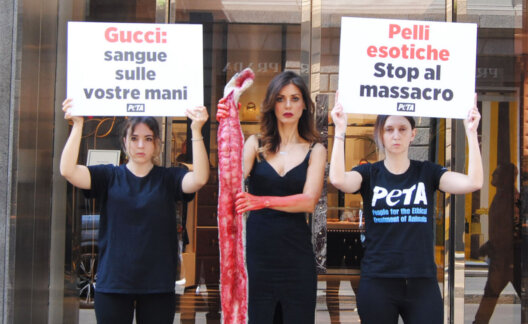 Wearing any animal’s skin is wrong, but many people don’t realise that it’s not only cows and bulls who die in the industry, where supply chains can be murky at best.