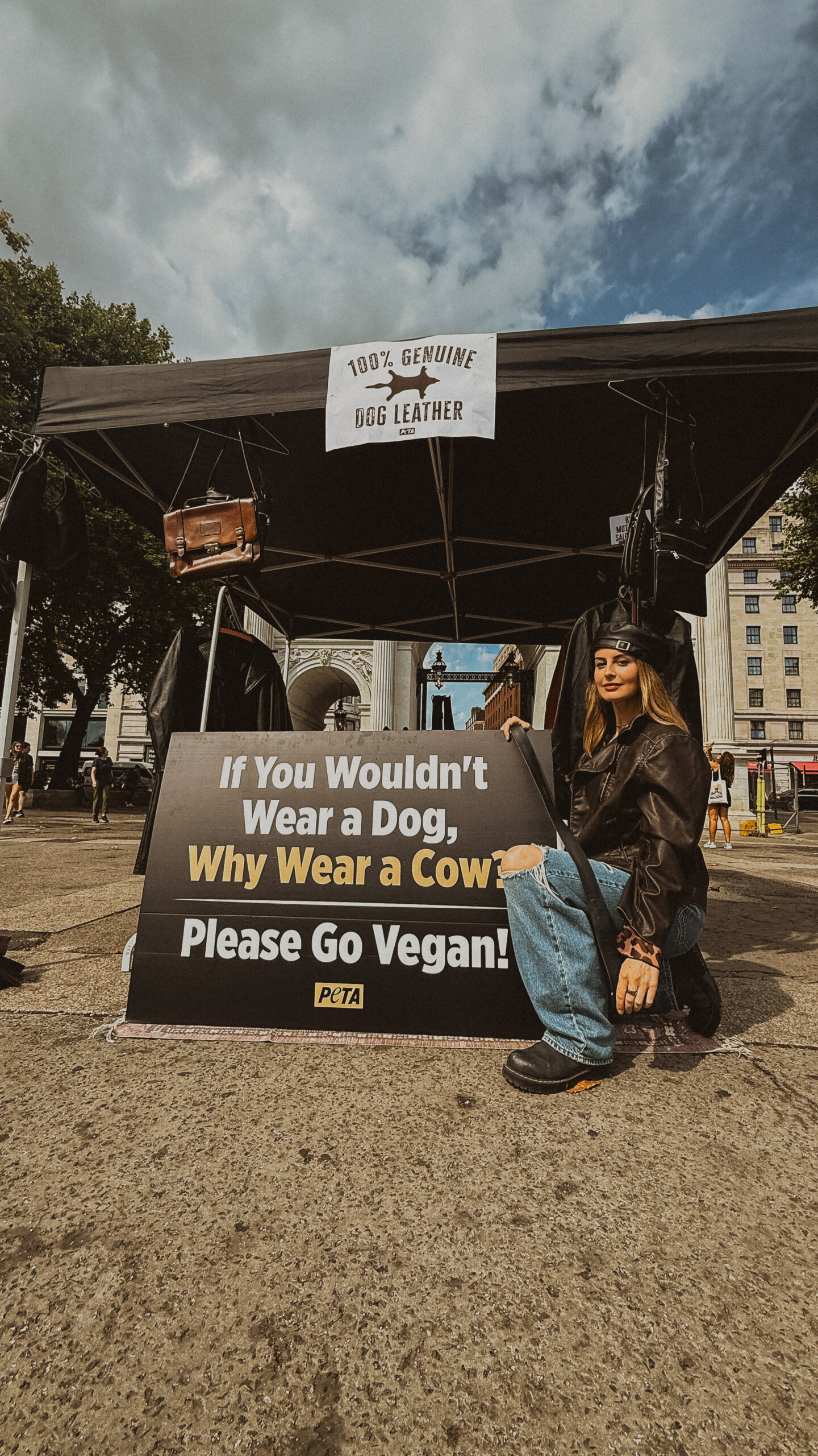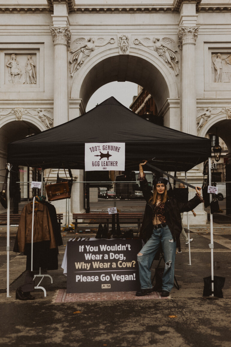 Londoners will never look at leather the same way after vegan influencer, Jamie Logan, set up a “dog leather” stall at London’s famed Marble Arch peddling everything from “Jack Russell jackets” to “Beagle belts and bags.”