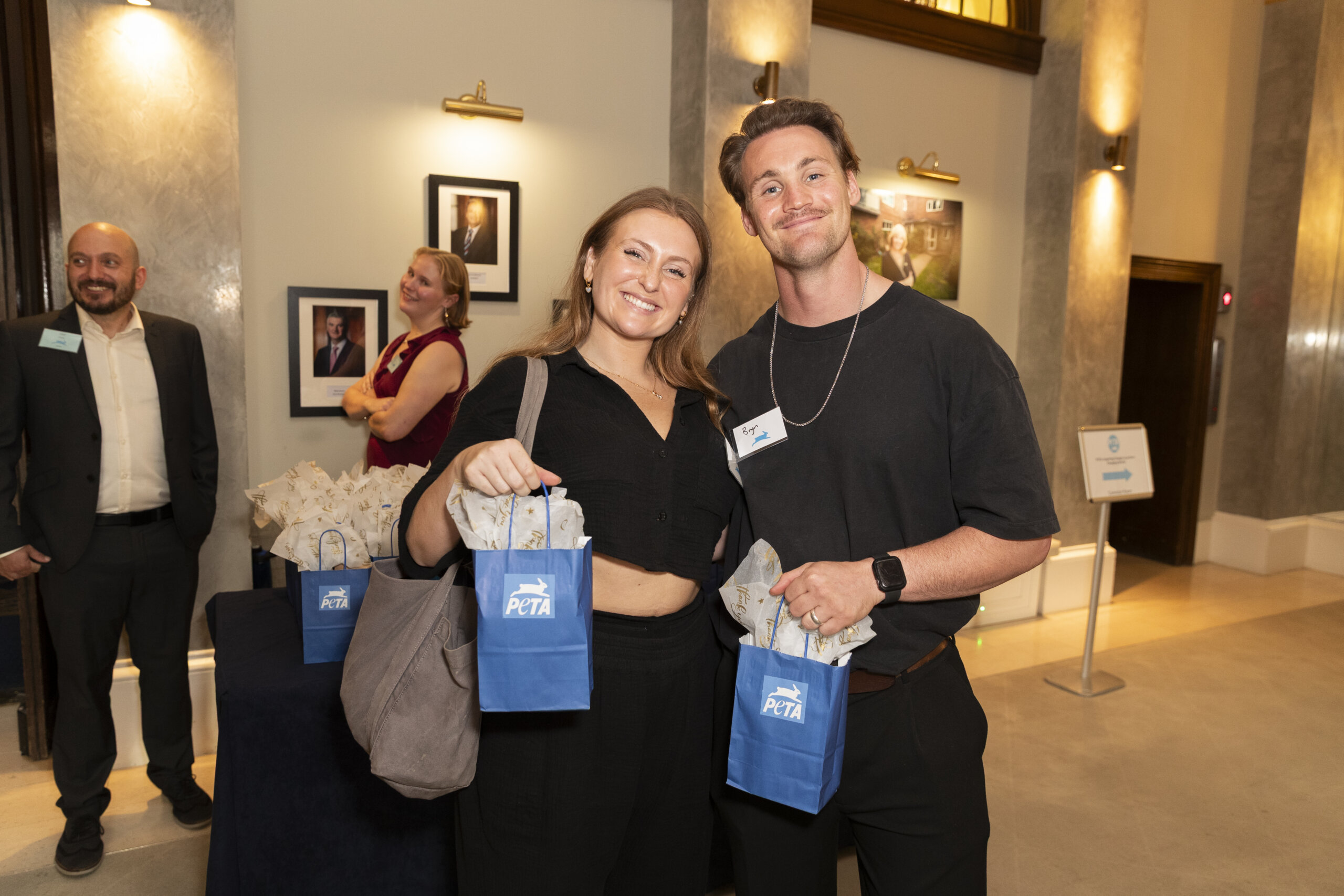 Guests bid on hot ticket items, including Leticia Credidio’s vegan silk dress, cruelty-free accessories from Mashu and VOTCH, and sustainable jewellery from Jana Reinhardt. Two lucky attendees won PETA-Approved Vegan Suri Frey backpacks. Thanks to a generous anonymous donor who matched all contributions up to £50,000, many gifts made during the event had double the impact.