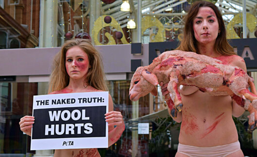 A PETA Asia investigation into the cashmere industry in China and Mongolia revealed animals screaming in pain and fear while workers stood on their delicate bodies, wrenching their limbs, and tearing out their hair from the root. Goats were given no pain relief or veterinary care. One worker even poured rice wine into an animal’s gaping wound.